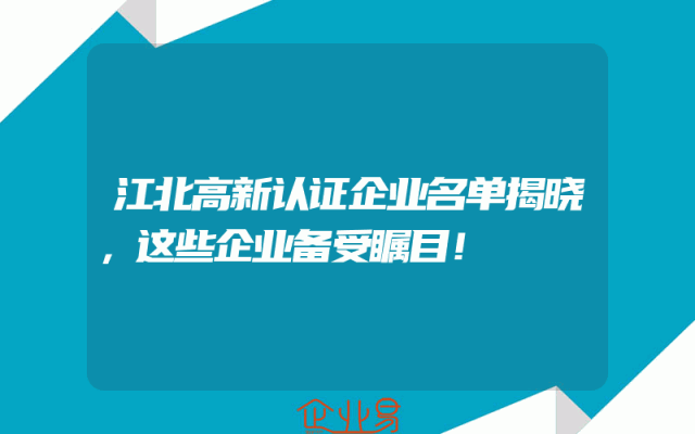 - 江北高新认证企业名单揭晓,这些企业备受瞩目!