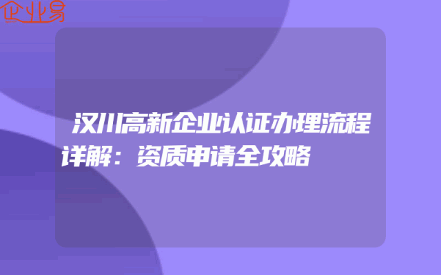 - 汉川高新企业认证办理流程详解:资质申请全攻略