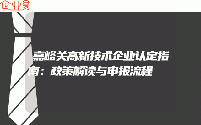 - 嘉峪关高新技术企业认定指南:政策解读与申报流程