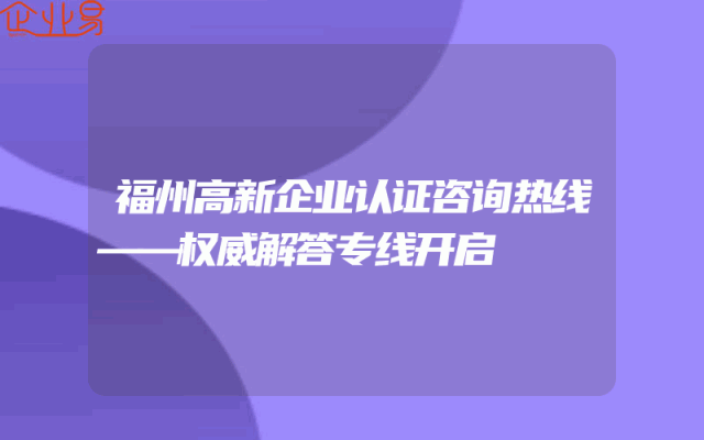 - 福州高新企业认证咨询热线——权威解答专线开启