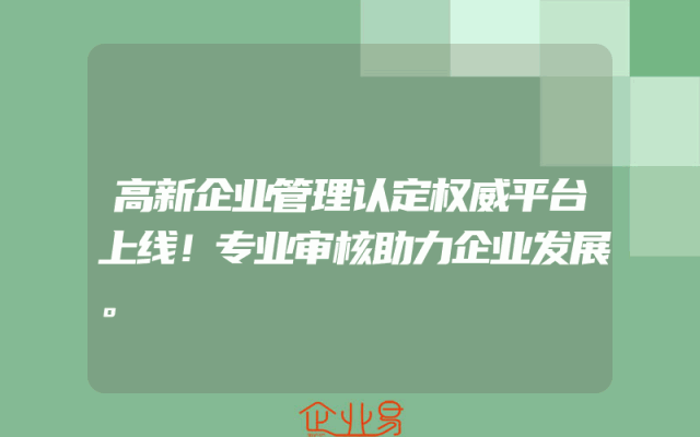- 高新企业管理认定权威平台上线!专业审核助力企业发展。