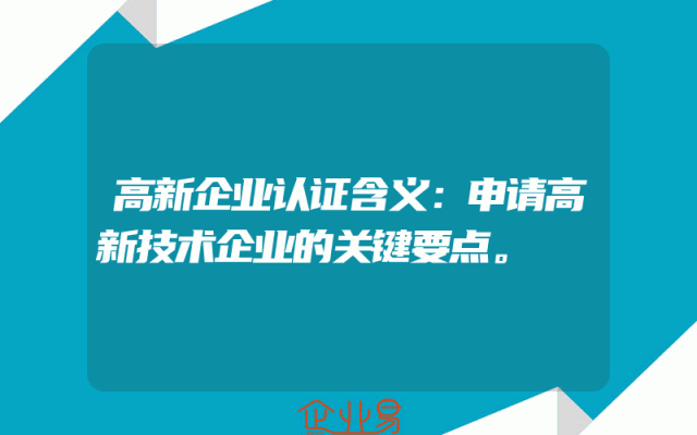 - 高新企业认证含义:申请高新技术企业的关键要点。
