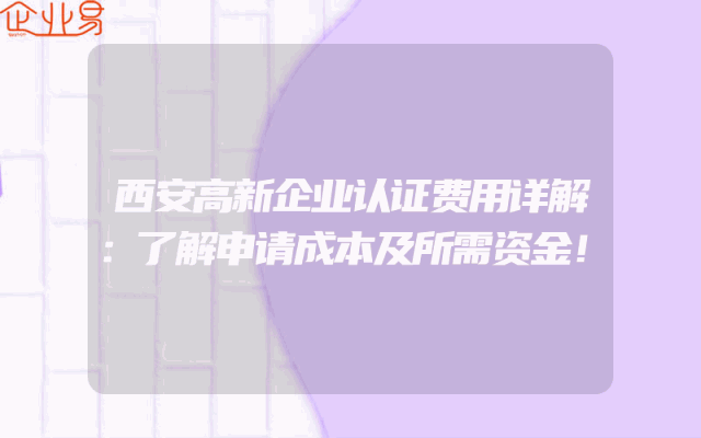 - 西安高新企业认证费用详解:了解申请成本及所需资金!
