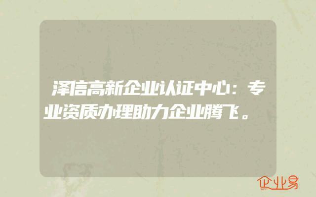 - 泽信高新企业认证中心:专业资质办理助力企业腾飞。