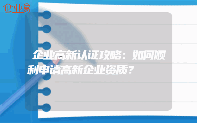 - 企业高新认证攻略:如何顺利申请高新企业资质?