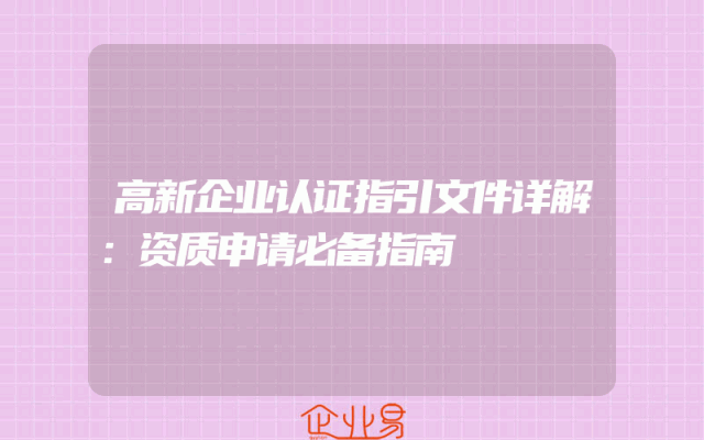 - 高新企业认证指引文件详解:资质申请必备指南