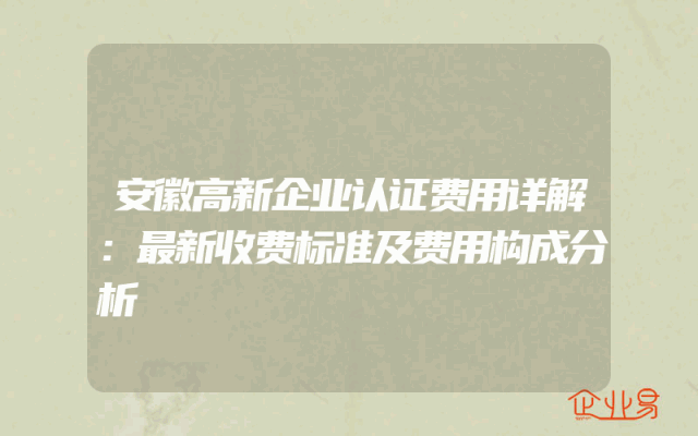 - 安徽高新企业认证费用详解:最新收费标准及费用构成分析