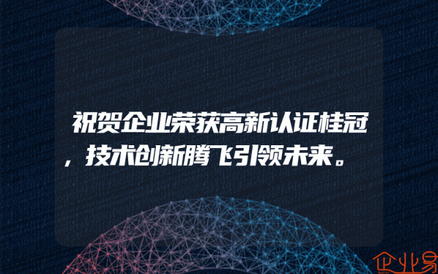 - 祝贺企业荣获高新认证桂冠,技术创新腾飞引领未来一、荣誉时刻在今日这个充满竞争与机遇的时代,我们欣喜地看到,贵企业经过不懈努力与创新,终于荣获高新认证桂冠。这是贵企业技术实力与持续创新的最好证明,也是贵企业在行业发展中的里程碑。高新认证不仅是