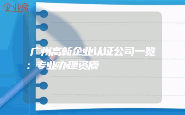 - 广州高新企业认证公司一览:专业办理资质解析一、广州高新企业认证概述随着科技的不断进步和创新,广州作为我国的经济中心之一,拥有众多高新技术企业和创新型企业。在这样的背景下,广州高新企业认证公司应运而生,为企业提供专业的高新资质认证服务。这些公