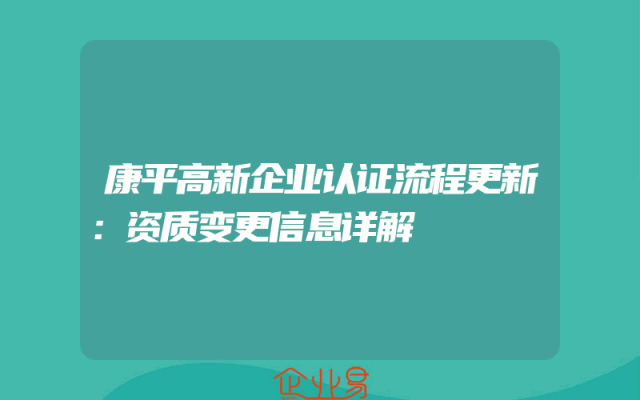 - 康平高新企业认证流程更新:资质变更信息详解一、康平高新企业认证概述随着科技的不断进步,康平地区的高新技术企业如雨后春笋般涌现。为了规范企业运营,提升区域产业发展水平,康平高新企业认证流程持续更新。本文将详细解读最新的资质变更信息,以帮助企业