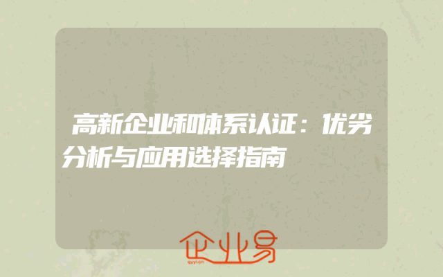 - 高新企业和体系认证:优劣分析与应用选择指南