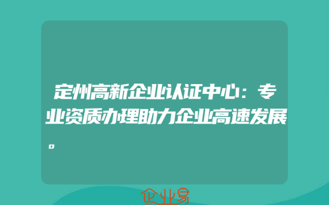 - 定州高新企业认证中心:专业资质办理助力企业高速发展。