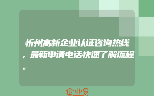 - 忻州高新企业认证咨询热线,最新申请电话快速了解流程。