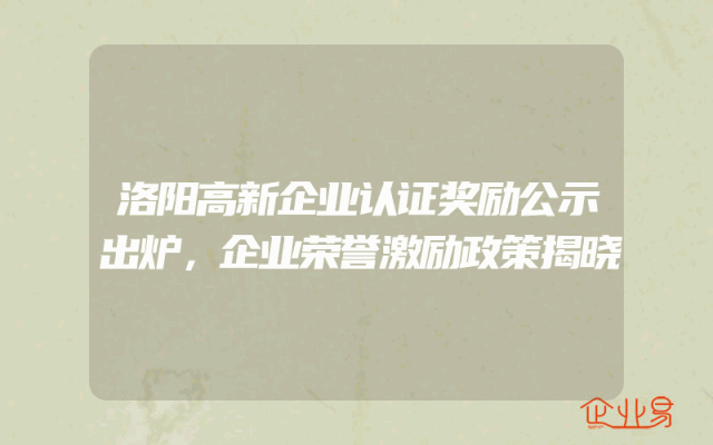 - 洛阳高新企业认证奖励公示出炉,企业荣誉激励政策揭晓