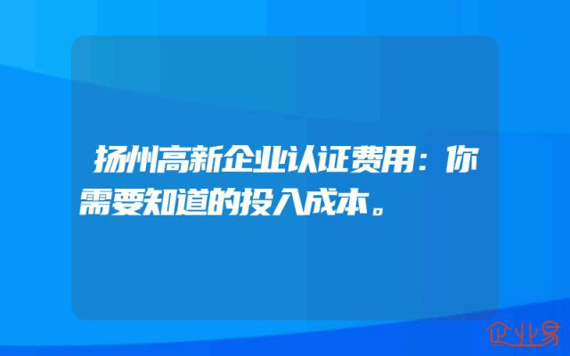 - 扬州高新企业认证费用:你需要知道的投入成本。