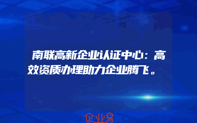 - 南联高新企业认证中心:高效资质办理助力企业腾飞。