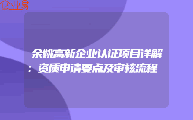 - 余姚高新企业认证项目详解:资质申请要点及审核流程