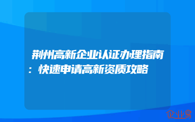 - 荆州高新企业认证办理指南:快速申请高新资质攻略