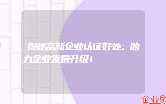 - 揭秘高新企业认证好处:助力企业发展升级!