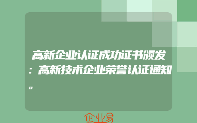 - 高新企业认证成功证书颁发:高新技术企业荣誉认证通知。