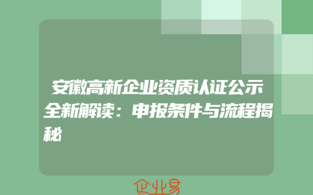 - 安徽高新企业资质认证公示全新解读:申报条件与流程揭秘