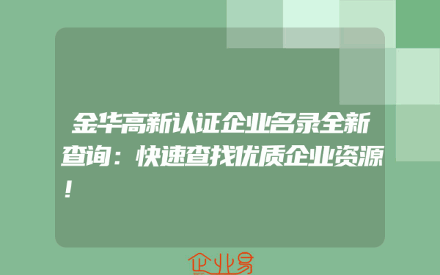 - 金华高新认证企业名录全新查询:快速查找优质企业资源!
