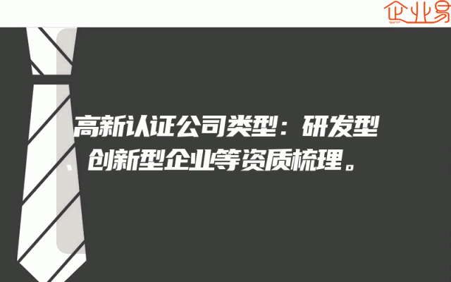 - 高新认证公司类型:研发型、创新型企业等资质梳理。