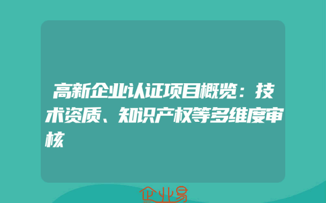 - 高新企业认证项目概览:技术资质、知识产权等多维度审核
