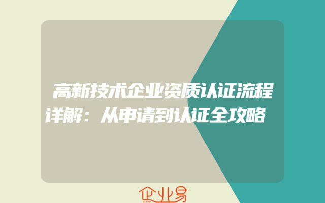 - 高新技术企业资质认证流程详解:从申请到认证全攻略
