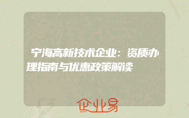 - 宁海高新技术企业:资质办理指南与优惠政策解读
