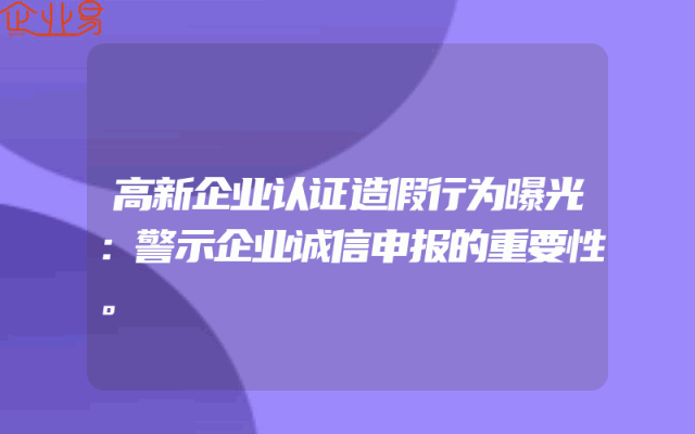 - 高新企业认证造假行为曝光:警示企业诚信申报的重要性。