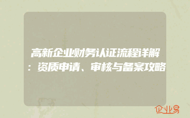 - 高新企业财务认证流程详解:资质申请、审核与备案攻略