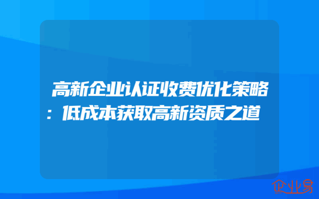 - 高新企业认证收费优化策略:低成本获取高新资质之道