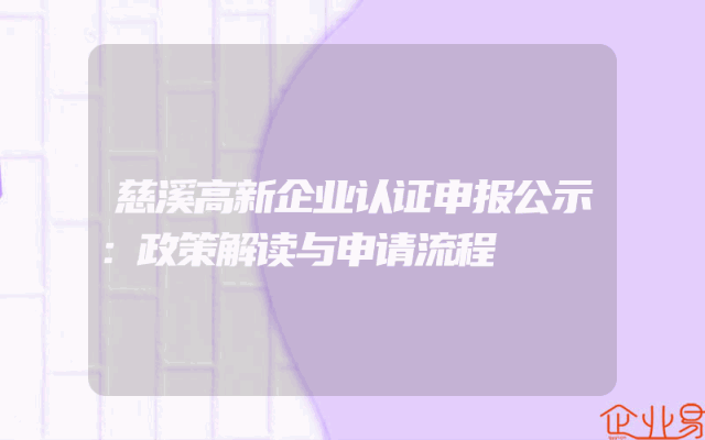 - 慈溪高新企业认证申报公示:政策解读与申请流程