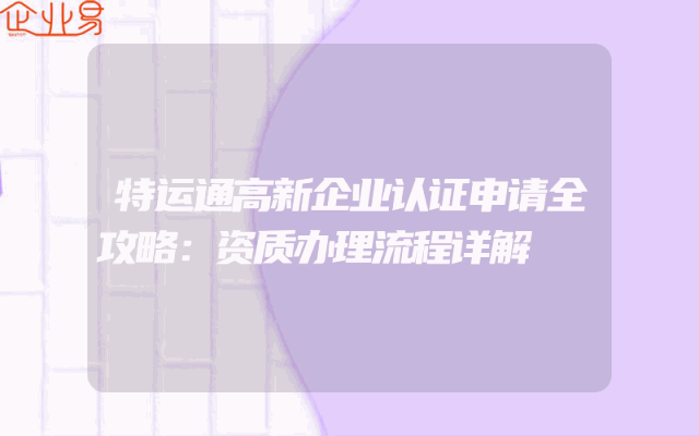 - 特运通高新企业认证申请全攻略:资质办理流程详解