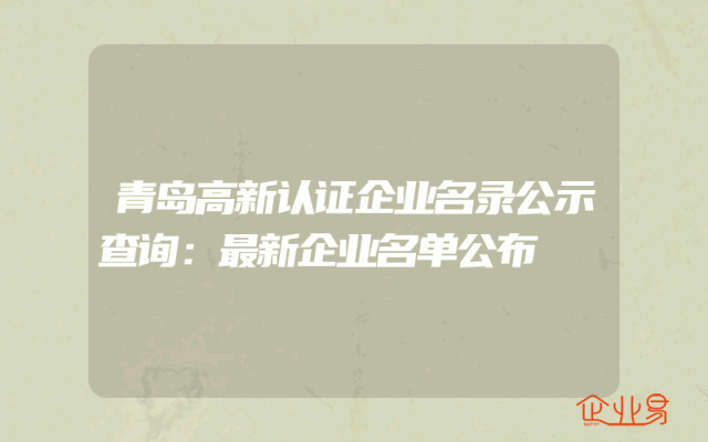 - 青岛高新认证企业名录公示查询:最新企业名单公布
