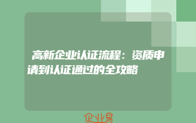 - 高新企业认证申请流程:公司如何高效完成资质办理