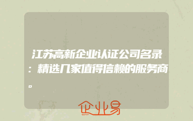 - 江苏高新企业认证公司名录:精选几家值得信赖的服务商。
