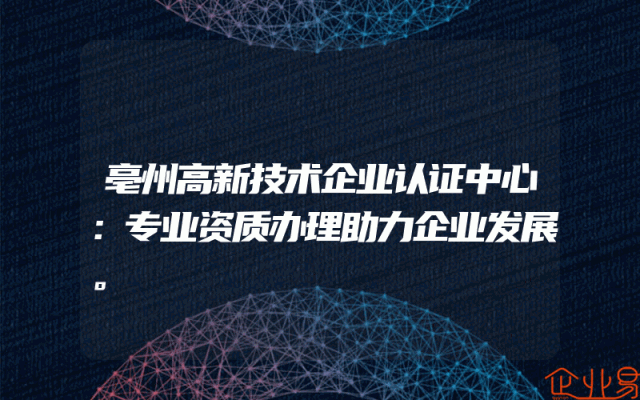 - 亳州高新技术企业认证中心:专业资质办理助力企业发展。