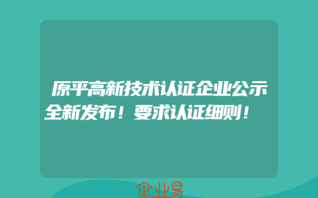 - 原平高新技术认证企业公示全新发布!要求认证细则!