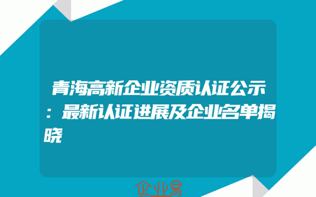 - 青海高新企业资质认证公示:最新认证进展及企业名单揭晓