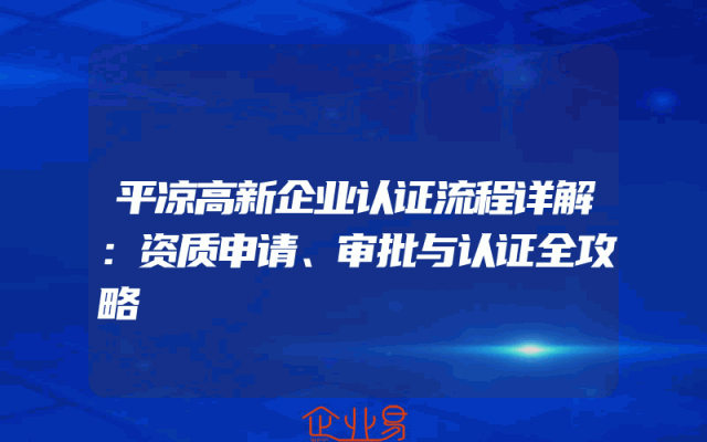 - 平凉高新企业认证流程详解:资质申请、审批与认证全攻略
