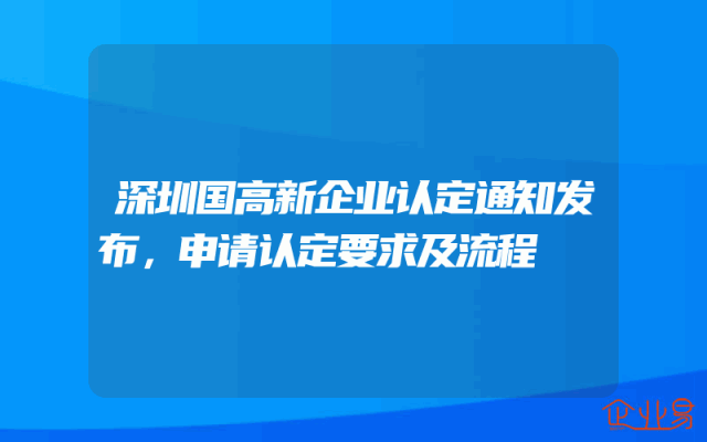 - 深圳国高新企业认定通知发布,申请认定要求及流程