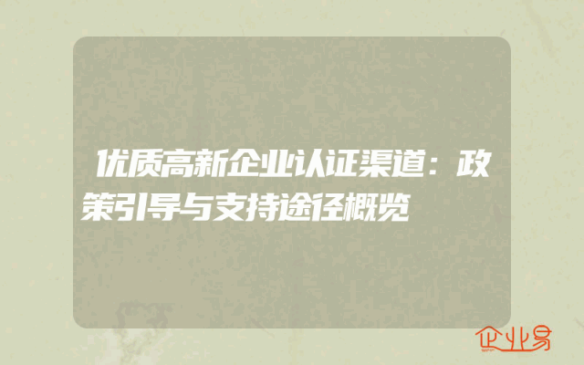 - 优质高新企业认证渠道:政策引导与支持途径概览