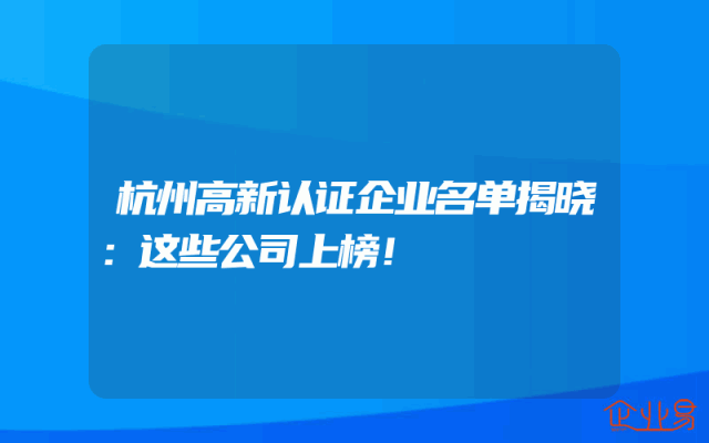 - 杭州高新认证企业名单揭晓:这些公司上榜!