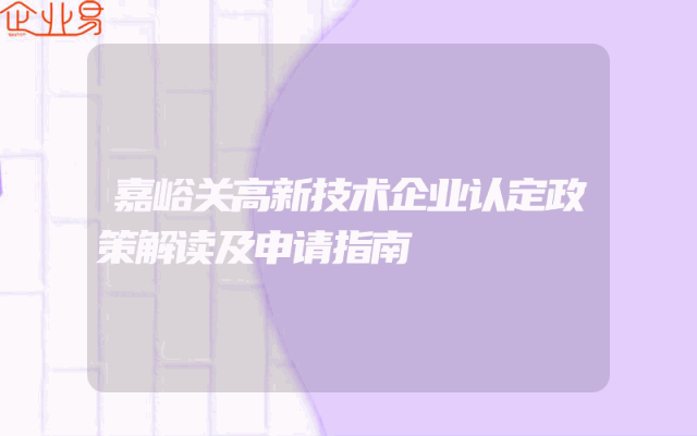 - 嘉峪关高新技术企业认定政策解读及申请指南