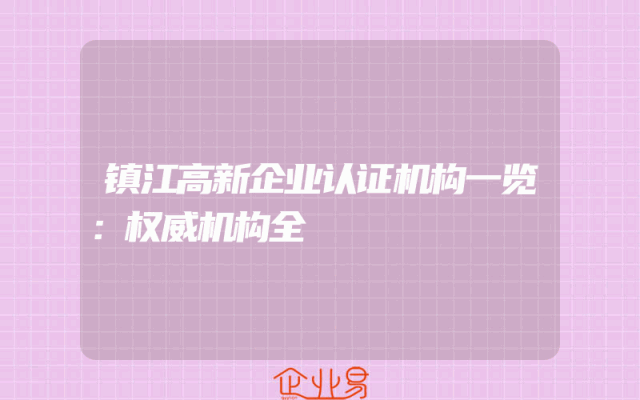 - 镇江高新企业认证机构一览:权威机构全解析一、镇江高新企业认证机构概述随着科技创新的不断发展,高新技术企业认证已成为企业提升竞争力的重要途径。在镇江,有许多权威机构致力于为企业提供服务,助力它们顺利获得高新企业认证。这些机构不仅熟悉认证流程,