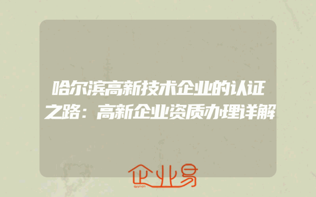 - 哈尔滨高新技术企业的认证之路:高新企业资质办理详解