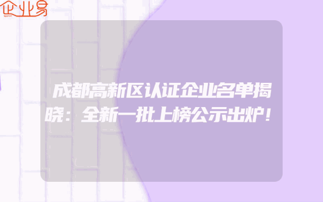 - 成都高新区认证企业名单揭晓:全新一批上榜公示出炉!