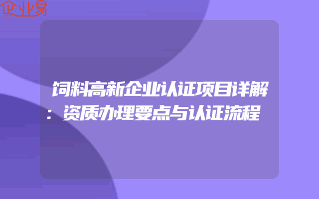 - 饲料高新企业认证项目详解:资质办理要点与认证流程